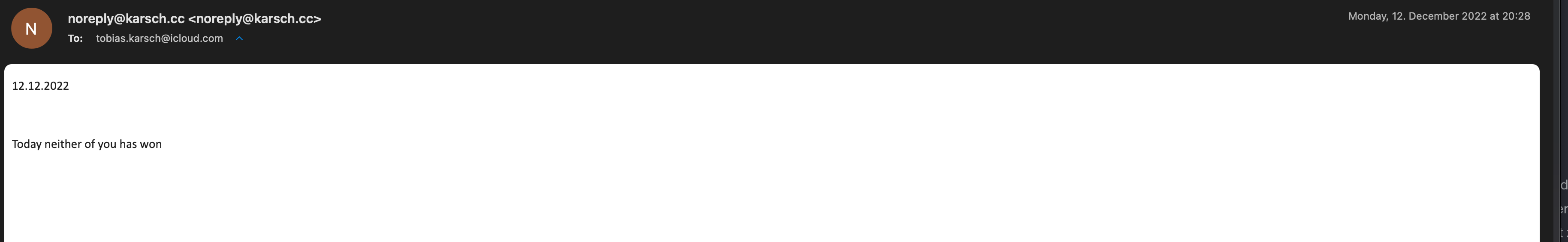 Letztes Jahr habe ich ein Python-Programm entwickelt, um eine Herausforderung mit meinem Adventskalender zu bewältigen. Der Kalender bot tägliche Gewinnchancen, aber um herauszufinden, ob ich gewonnen hatte, musste ich online nachsehen, ob meine einzigartige Kalendernummer unter den Tagesgewinnern war. Da ich diesen Prozess mühsam fand, erstellte ich ein Programm, das automatisch einmal täglich die Gewinnnummern von der Webseite abruft und überprüft, ob meine Nummer darunter ist. Außerdem habe ich das Programm so eingerichtet, dass es mir täglich eine E-Mail schickt, die mir mitteilt, ob ich etwas gewonnen habe oder nicht. Leider hatte ich in diesem Adventskalender keinen Gewinn.